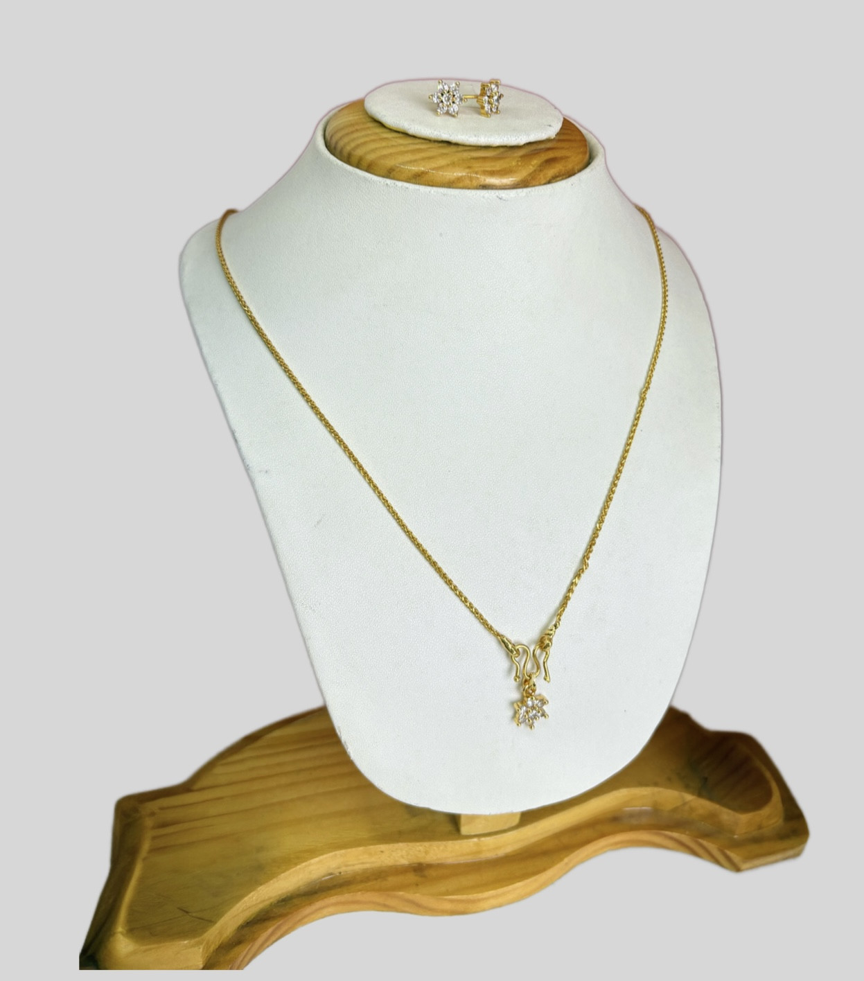 Gold Chain Necklace with Star-Shaped Pendant & Matching Stud Earrings