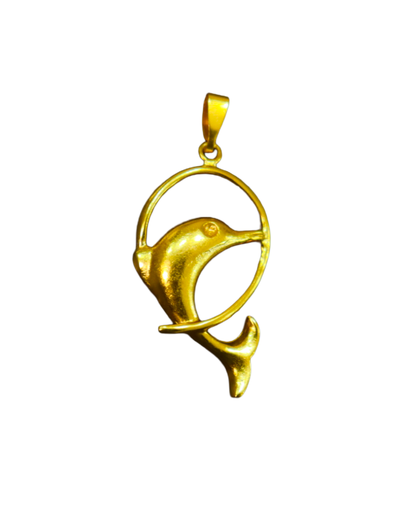 Celebrate playful elegance with this 14KT yellow gold pendant, featuring a dolphin leaping gracefully through a hoop. Its charming design captures movement and joy, making it a perfect accessory for everyday wear or a thoughtful gift for ocean lovers and jewelry enthusiasts alike.