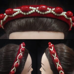 Celebrate the rich cultural heritage of Tibet with this handcrafted traditional hairband. Featuring vibrant coral, turquoise, and pearl beads intricately set on a luxurious red velvet base, this ethnic hair jewelry is both striking and elegant. Lightweight and comfortable, it is perfect for festivals, cultural events, weddings, or adding a bold, artistic accent to everyday outfits. Each piece is meticulously crafted, ensuring a unique accessory that reflects timeless Tibetan artistry and craftsmanship.